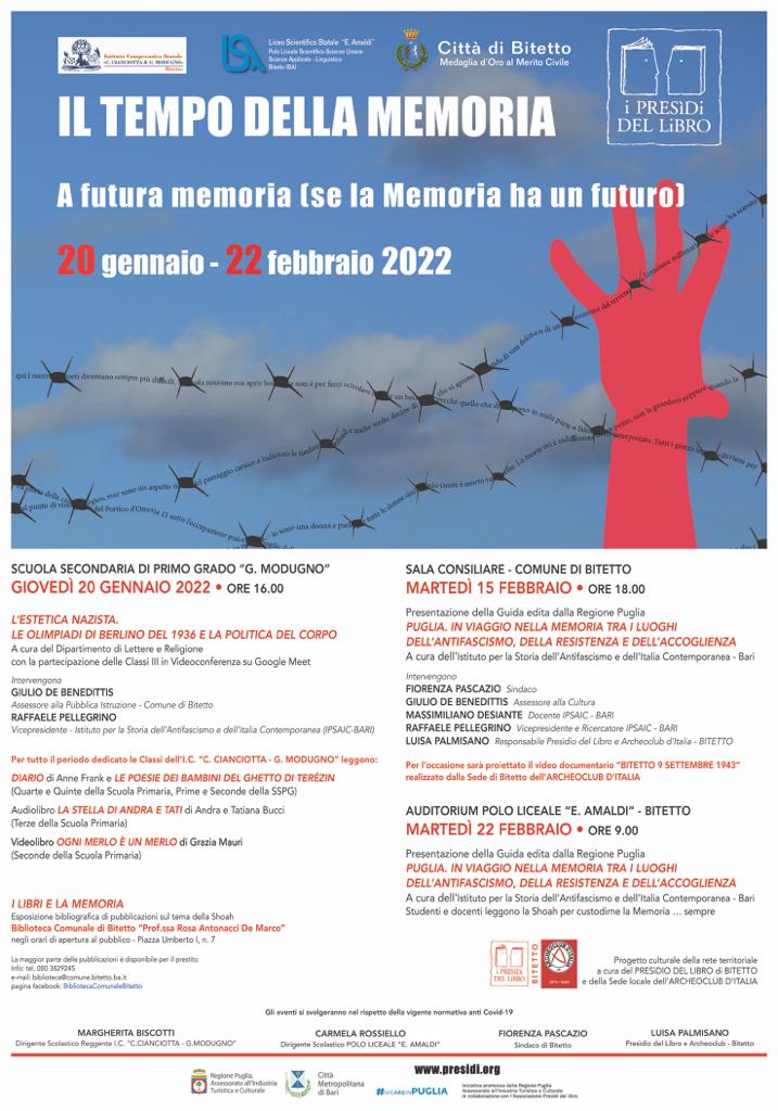 Il dipartimento di storia e filosofia, in collaborazione con il coordinamento del progetto lettura del nostro istituto e in rete con alcuni enti del territorio, ha previsto un momento di riflessione sui luoghi della memoria in Puglia.
